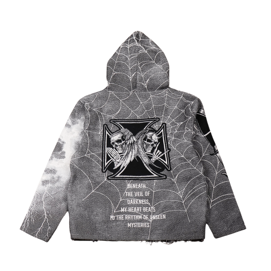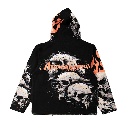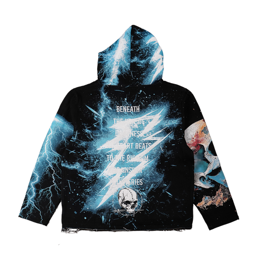 "Decayed" Tapestry Rhinestone Black Hoodie