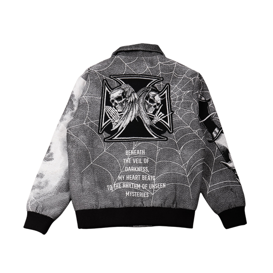"Motorsport" Tapestry and leather Rhinestone Grey Jacket