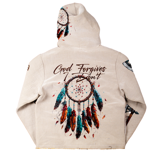 "Rock_life" Tapestry Rhinestone Beige Hoodie